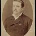 Photographic portrait of a man wearing a button-down coat with a white open high collar. The photograph format call "Carte de visite" is used in this case as a business card with the informations handwritten on the back : Paul Granier Directeur - Redacteur en chef du Ralliement de Belfort 37, rue Thiers Belfort (Paul Granier Director - Editor-in-chief of the Ralliement de Belfort 37, rue Thiers Belfort)